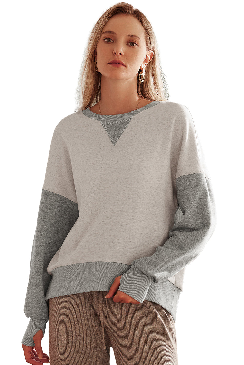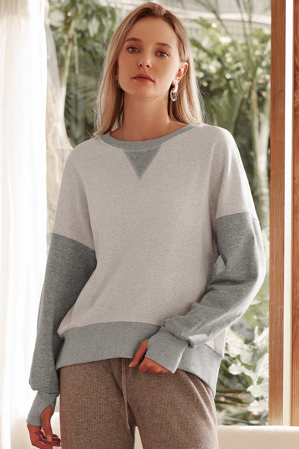 Thumbhole sleeves offer a unique and practical detail for added comfort.