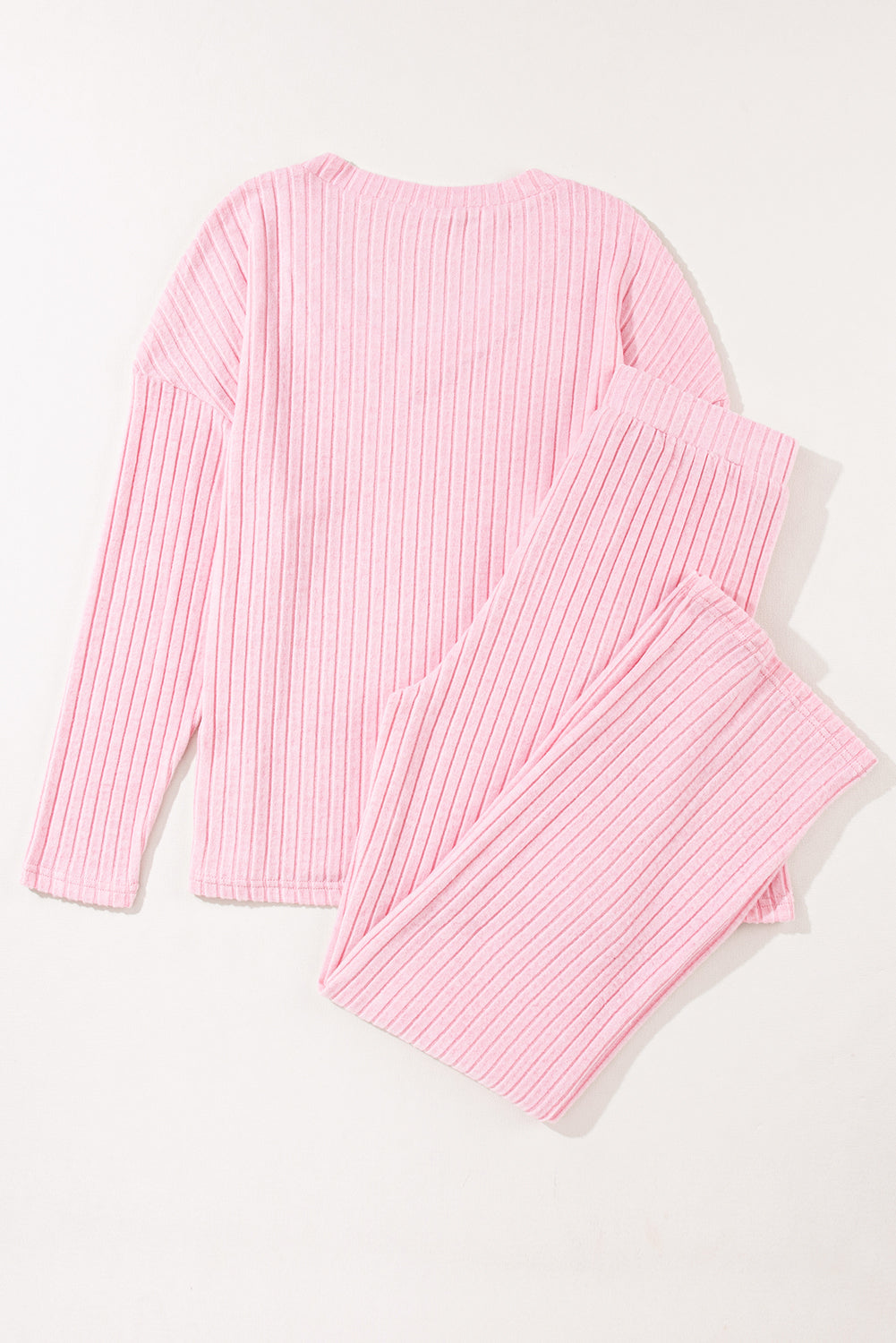 Light Grey Ribbed Knit V Neck Slouchy Two-piece Outfit