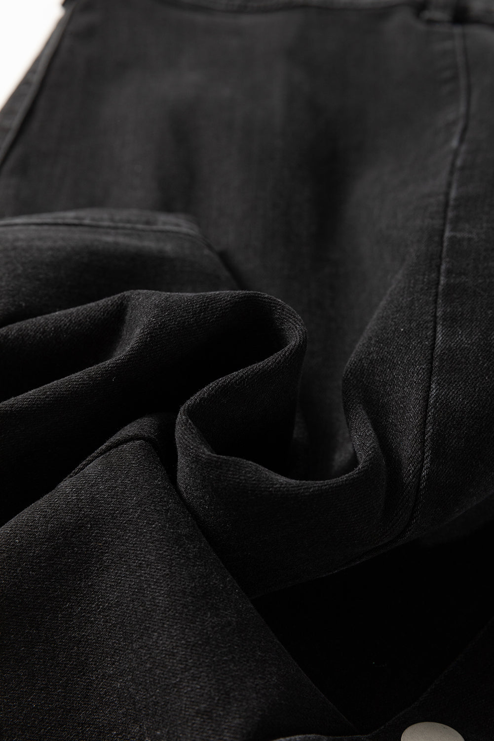 • Black Button Fly Side Split High Waist Denim Midi Skirt