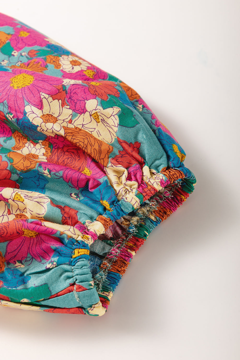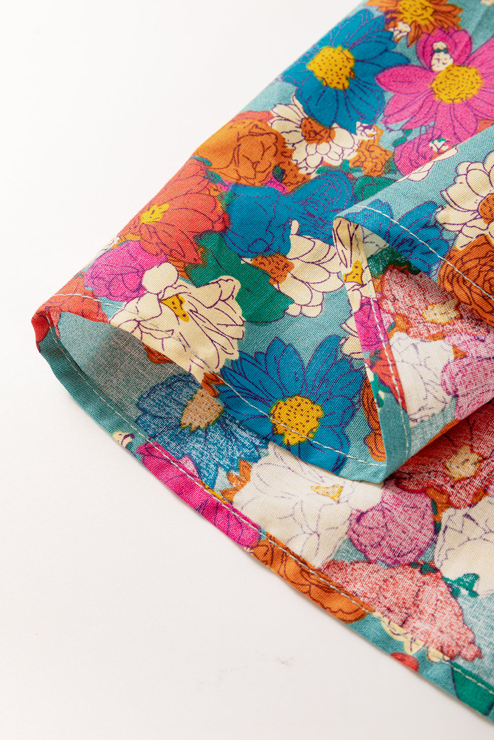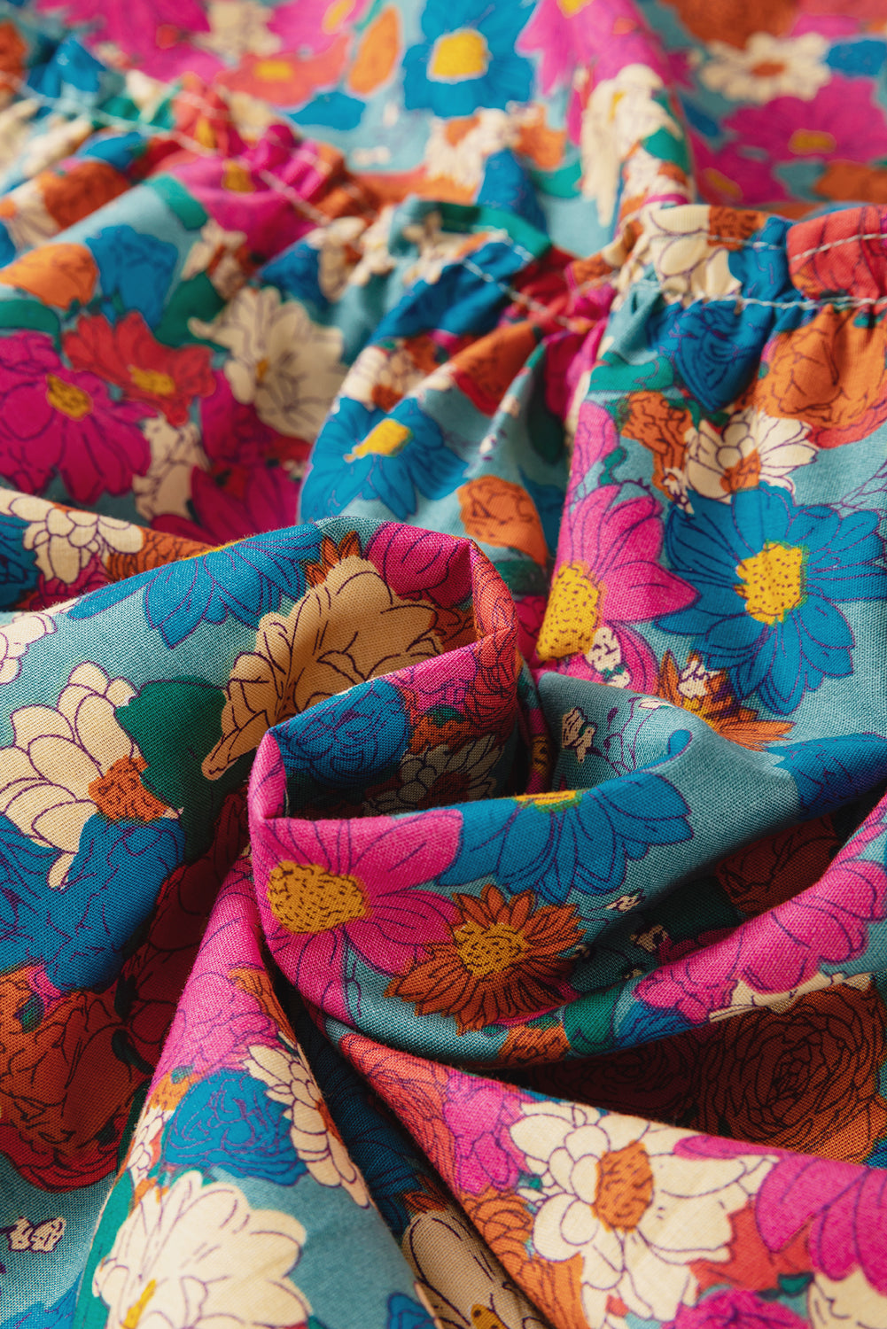 • Sky Blue Plus Size Floral Print Shirred Ruffle Tiered Mini Dress