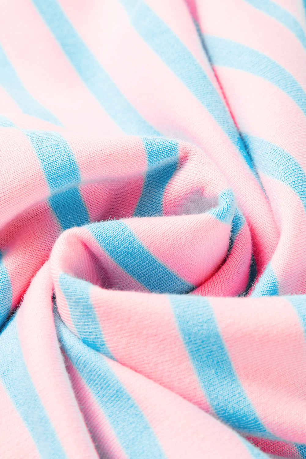 • Sky Blue Stripe Oversized Contrast Trim Exposed Seam High Low T Shirt