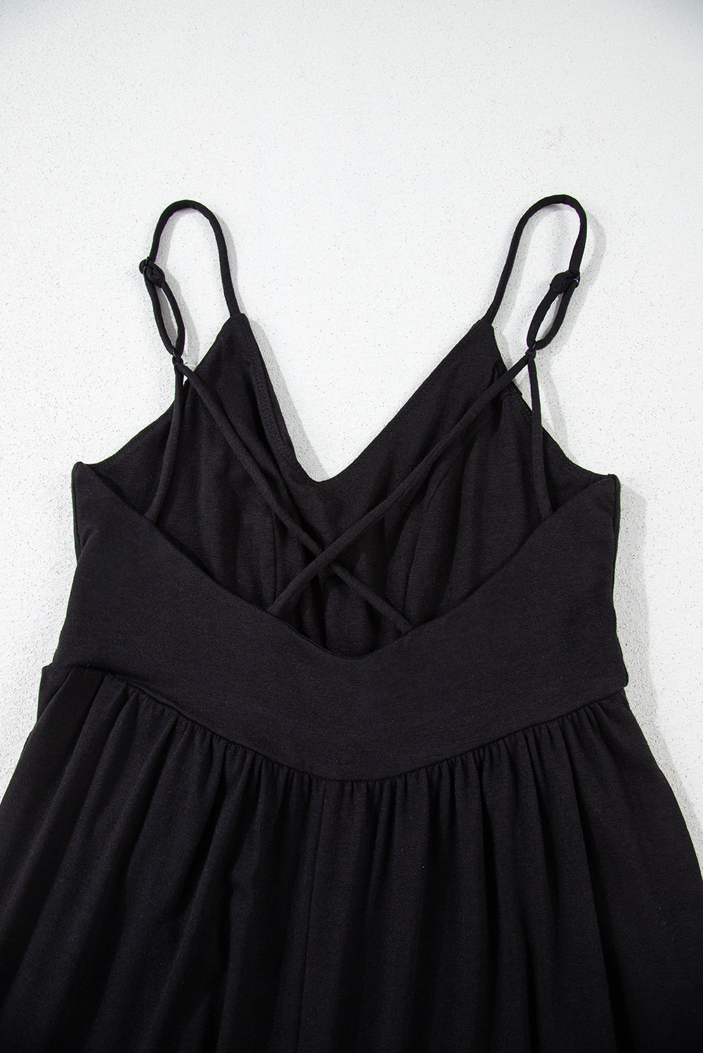 Open back design with crisscross detail adds a touch of allure.