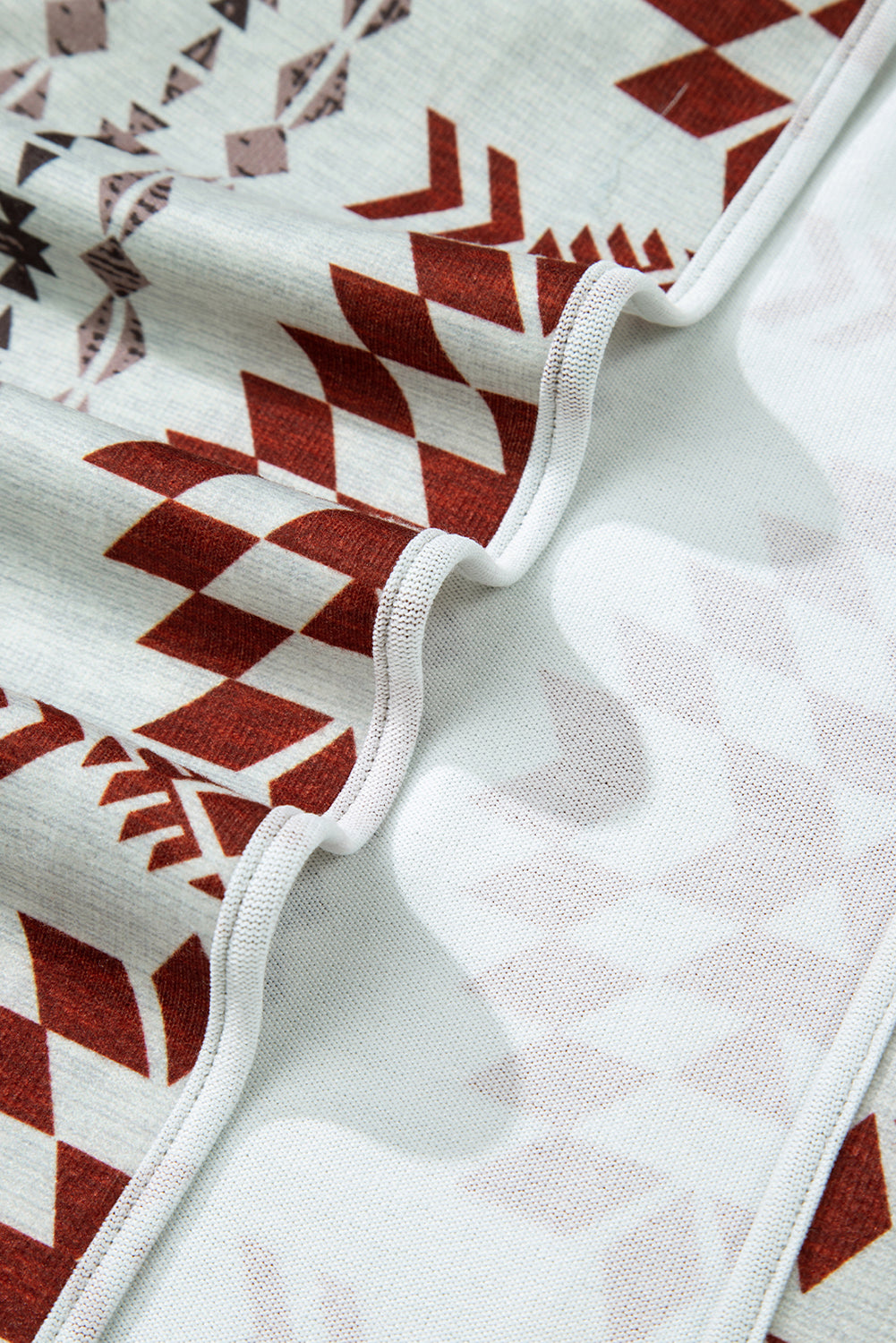 • Brown Western Aztec Printed Open Front Long Cardigan