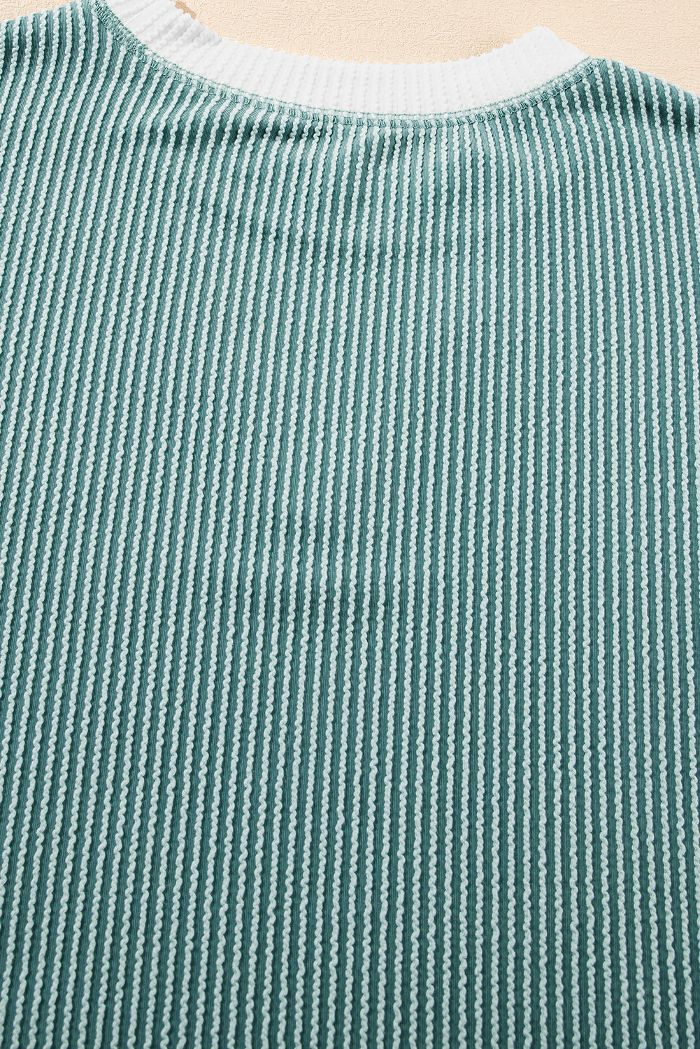 - This casual top is textured with a corded knit fabric made.