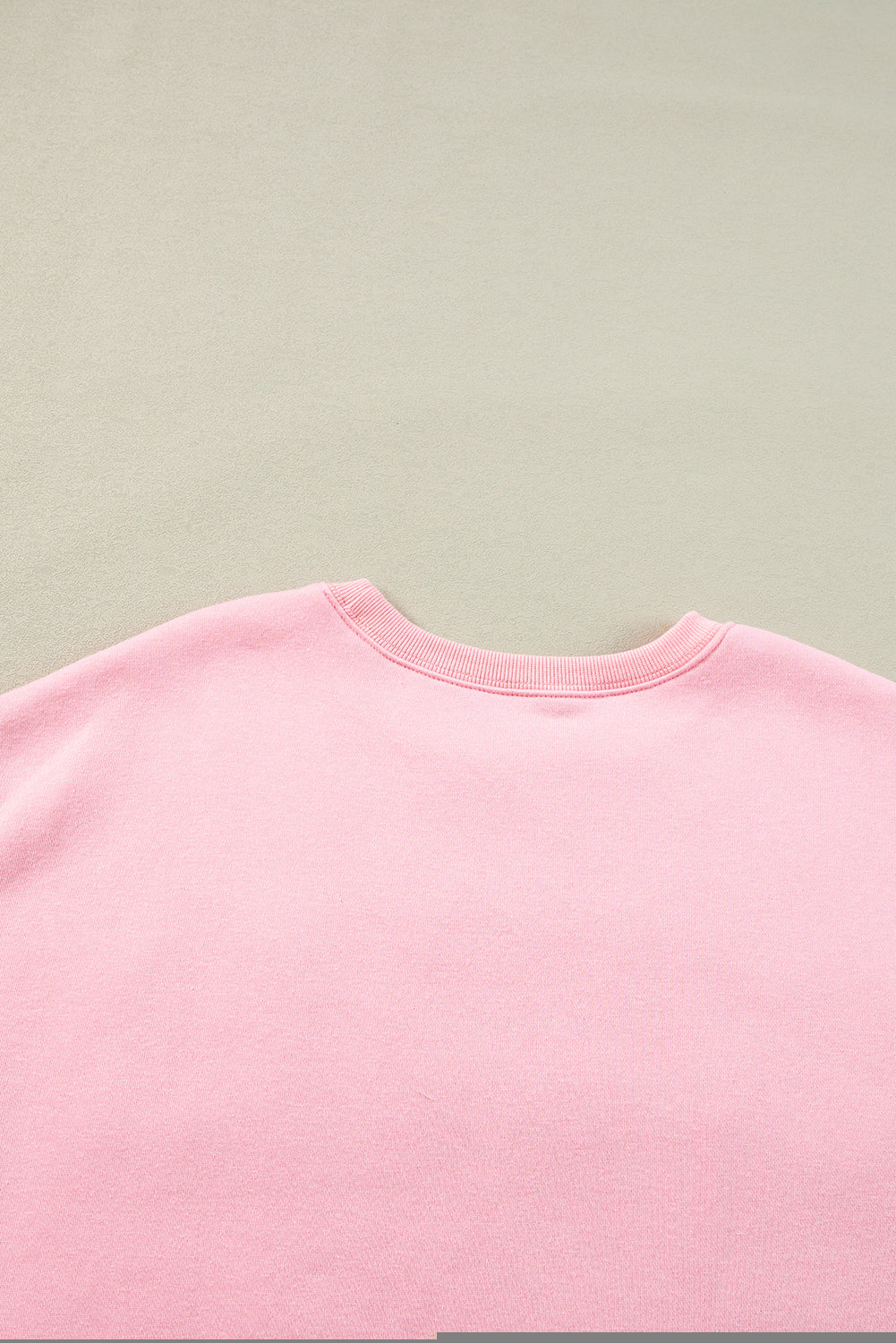 • Pink LOVER Puff Print Drop Shoulder Pullover Sweatshirt