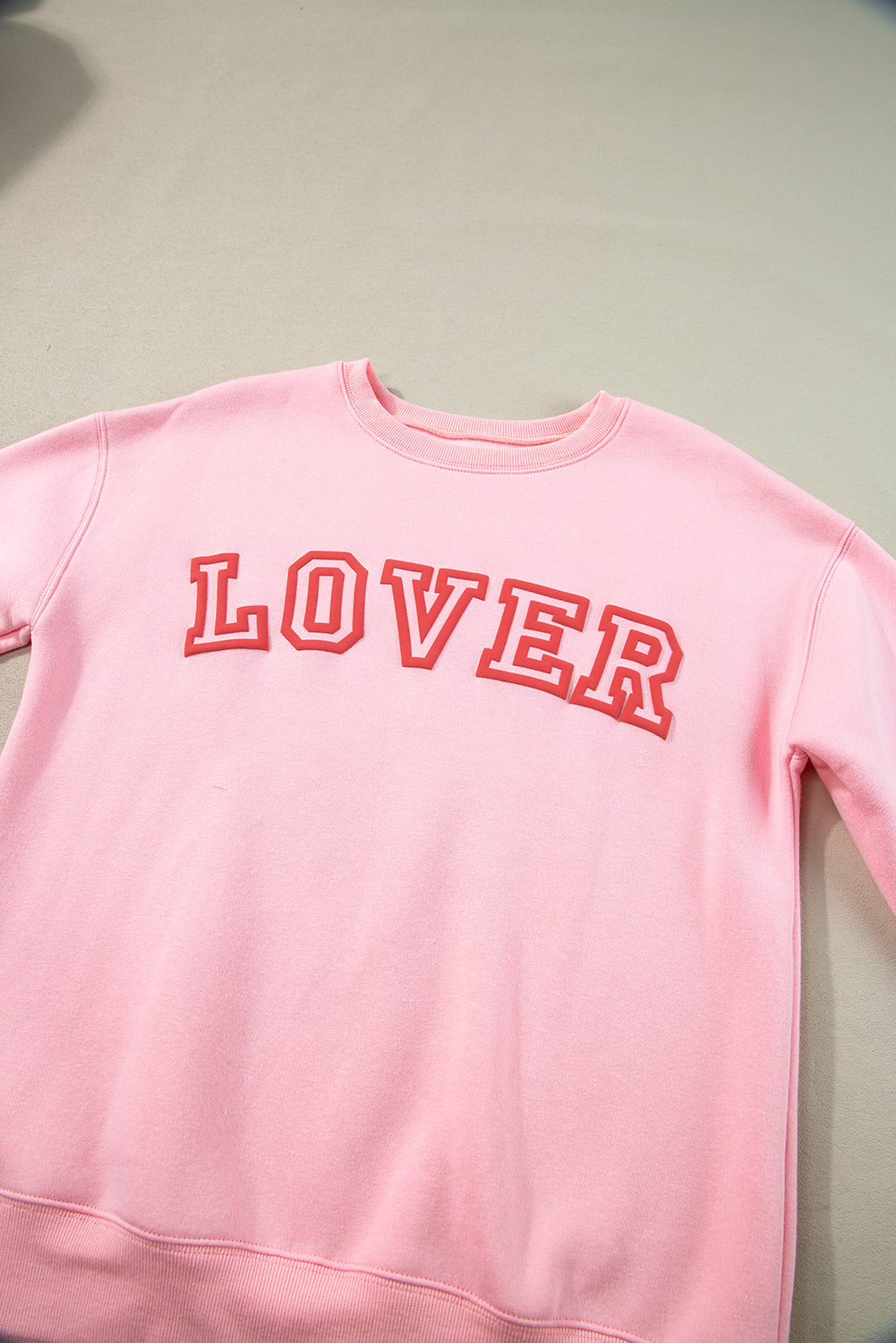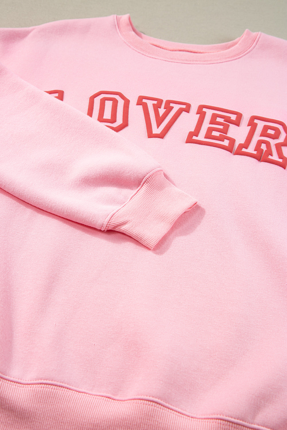 Pink LOVER Puff Print Drop Shoulder Pullover Sweatshirt