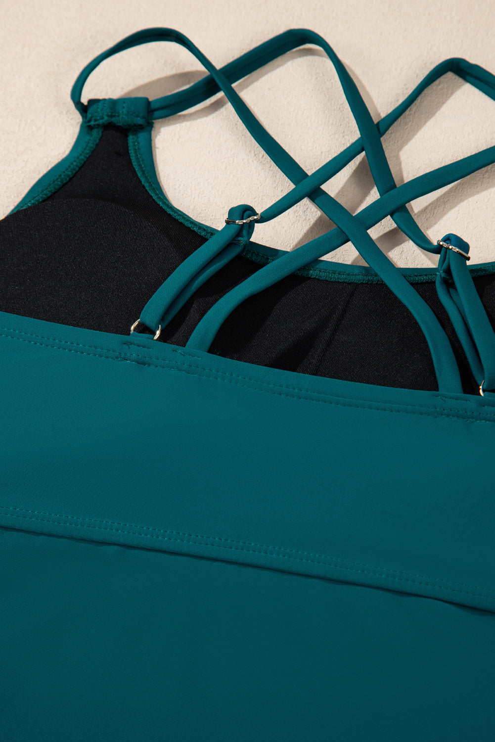 Sea Green Drawstring Tummy Control Mix-and-match 2pcs Tankini Swimsuit